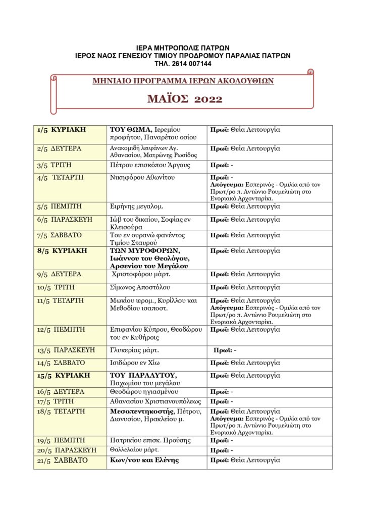 ΜΗΝΙΑΙΟ ΠΡΟΓΡΑΜΜΑ ΙΕΡΩΝ ΑΚΟΛΟΥΘΙΩΝ 30Δ Ιερός Ναός Γενεσίου Τιμίου Προδρόμου Παραλίας Πατρών. Πλοήγηση άρθρων Προηγούμενη Προηγούμενο άρθρο: EΓΚΥΚΛΙΟΣ ΣΕΒΑΣΜΙΩΤΑΤΟΥ ΜΗΤΡΟΠΟΛΙΤΟΥ ΠΑΤΡΩΝ κ.κ. ΧΡΥΣΟΣΤΟΜΟΥ ΠΡΟΣ ΤΟΝ ΛΑΟ.Επόμενη Επόμενο άρθρο: Εβδομαδιαίο φυλλάδιο “ΓΙΑ ΤΟΥΣ ΓΟΝΕΙΣ ΤΗΣ ΕΝΟΡΙΑΣ” Αφήστε μια απάντηση Ακύρωση απάντησηςΗ ηλ. διεύθυνση σας δεν δημοσιεύεται. Τα υποχρεωτικά πεδία σημειώνονται με *Σχόλιο * Όνομα * Email * Ιστότοπος Αποθήκευσε το όνομά μου, email, και τον ιστότοπο μου σε αυτόν τον πλοηγό για την επόμενη φορά που θα σχολιάσω.