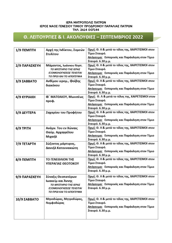 Πρόγραμμα Ιερών Ακολουθιών 26Δ Σεπτέμβριος 2022 Ιερού Ναού Γενεσίου Τιμίου Προδρόμου Παραλίας Πατρών Πλοήγηση άρθρων Προηγούμενη Προηγούμενο άρθρο: Εβδομαδιαίο φυλλάδιο “ΓΙΑ ΤΟΥΣ ΓΟΝΕΙΣ ΤΗΣ ΕΝΟΡΙΑΣΕπόμενη Επόμενο άρθρο: Απονομή επαίνων επιτυχόντων πανελληνίων 2022 Αφήστε μια απάντηση Ακύρωση απάντησηςΗ ηλ. διεύθυνση σας δεν δημοσιεύεται. Τα υποχρεωτικά πεδία σημειώνονται με *Σχόλιο * Όνομα * Email * Ιστότοπος Αποθήκευσε το όνομά μου, email, και τον ιστότοπο μου σε αυτόν τον πλοηγό για την επόμενη φορά που θα σχολιάσω.