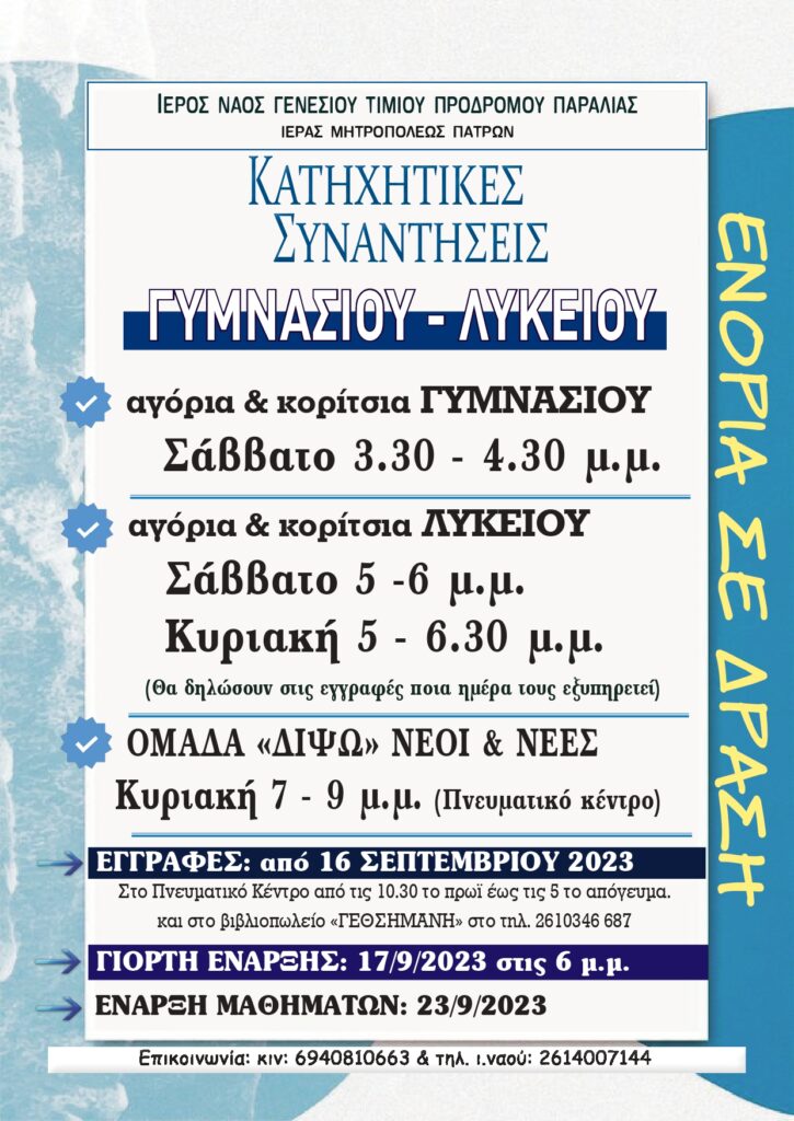 ΠΡΟΓΡΑΜΜΑ ΚΑΤΗΧΗΤΙΚΩΝ ΣΥΝΑΝΤΗΣΕΩΝ 08Δ ΙΕΡΟΣ ΝΑΟΣ ΓΕΝΕΣΙΟΥ ΤΙΜΙΟΥ ΠΡΟΔΡΟΜΟΥ ΠΑΡΑΛΙΑΣ ΠΑΤΡΩΝ Πλοήγηση άρθρων Προηγούμενη Προηγούμενο άρθρο: ΠΡΟΓΡΑΜΜΑ ΙΕΡΩΝ ΑΚΟΛΟΥΘΙΩΝ ΙΕΡΟΥ ΝΑΟΥ ΓΕΝΕΣΙΟΥ ΤΙΜΙΟΥ ΠΡΟΔΡΟΜΟΥ ΠΑΡΑΛΙΑΣ ΠΑΤΡΩΝΕπόμενη Επόμενο άρθρο: ΕΝΗΜΕΡΩΤΙΚΟ ΚΑΤΗΧΗΤΙΚΟ ΦΥΛΛΑΔΙΟ Αφήστε μια απάντηση Ακύρωση απάντησηςΗ ηλ. διεύθυνση σας δεν δημοσιεύεται. Τα υποχρεωτικά πεδία σημειώνονται με *Σχόλιο * Όνομα * Email * Ιστότοπος Αποθήκευσε το όνομά μου, email, και τον ιστότοπο μου σε αυτόν τον πλοηγό για την επόμενη φορά που θα σχολιάσω.