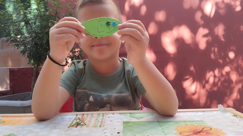“Αγάπη: Η αγάπη είναι όταν βοηθάς κάποιον, όταν τον φροντίζεις και τον αγκαλιάζεις. Όπως όταν βοηθάς τη μαμά σου να μαζέψει τα παιχνίδια ή όταν παίζεις με τους φίλους σου χωρίς να τσακώνεστε.”