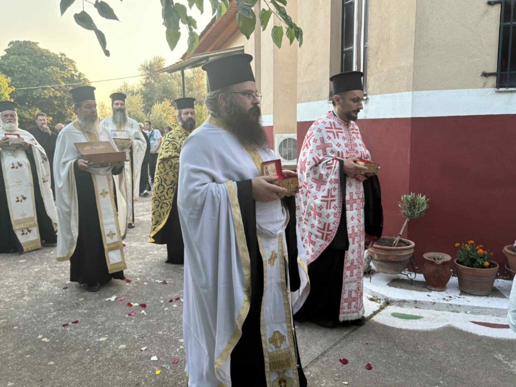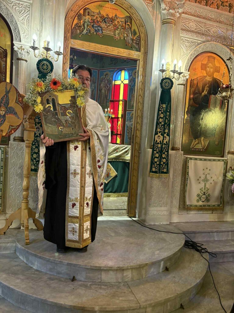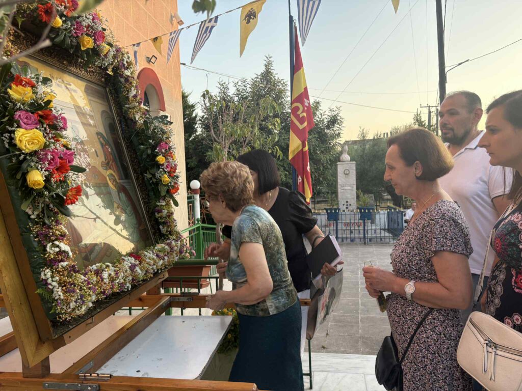 Την παραμονή της εορτής έγινε η έξοδος της ιεράς εικόνας του Αγίου από τους εφημερίους του ναού πρωτοπρεσβυτέρους π. Αντώνιο Ρουμελιώτη και π. Ιωάννη Μιχαλόπουλο καθώς και τον π. Κωνσταντίνο Δαραμούσκα. Από τους πρώτους που προσκύνησαν την ιερά εικόνα ήταν ο βουλευτής και πρόεδρος του Δημοκρατικού και Πατριωτικού Κινήματος «ΝΙΚΗ» κ. Δημήτριος Νατσιός, που επισκέφτηκε τον ναό για να γνωρίσει από κοντά την δραστήρια εκκλησιαστικά αυτή ενορία. Μαζί με το επιτελείο του-ανάμεσά τους και οι βουλευτές κ. Σπύρος Τσιρώνης και Ανδρέας Βορύλλας- συνομίλησαν με τον προϊστάμενο του ναού πρωτοπρεσβύτερο π. Αντώνιο Ρουμελιώτη και δέχτηκαν το εορταστικό κέρασμα.