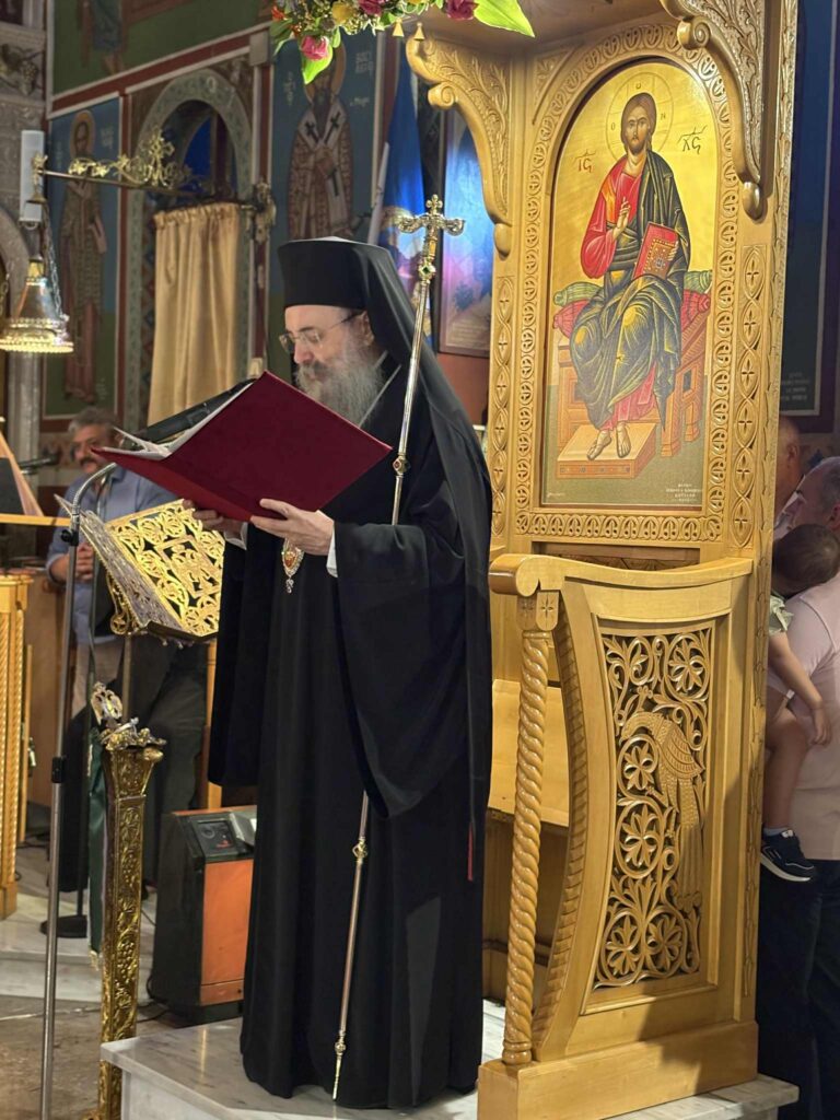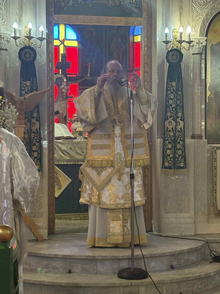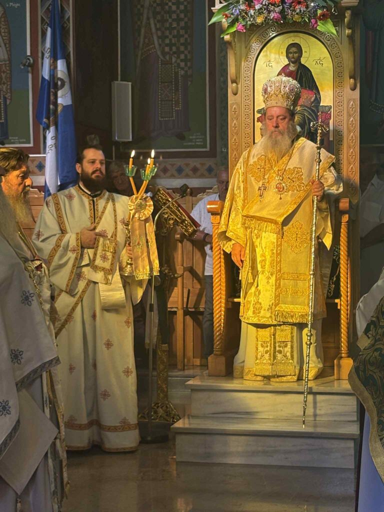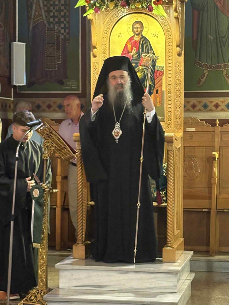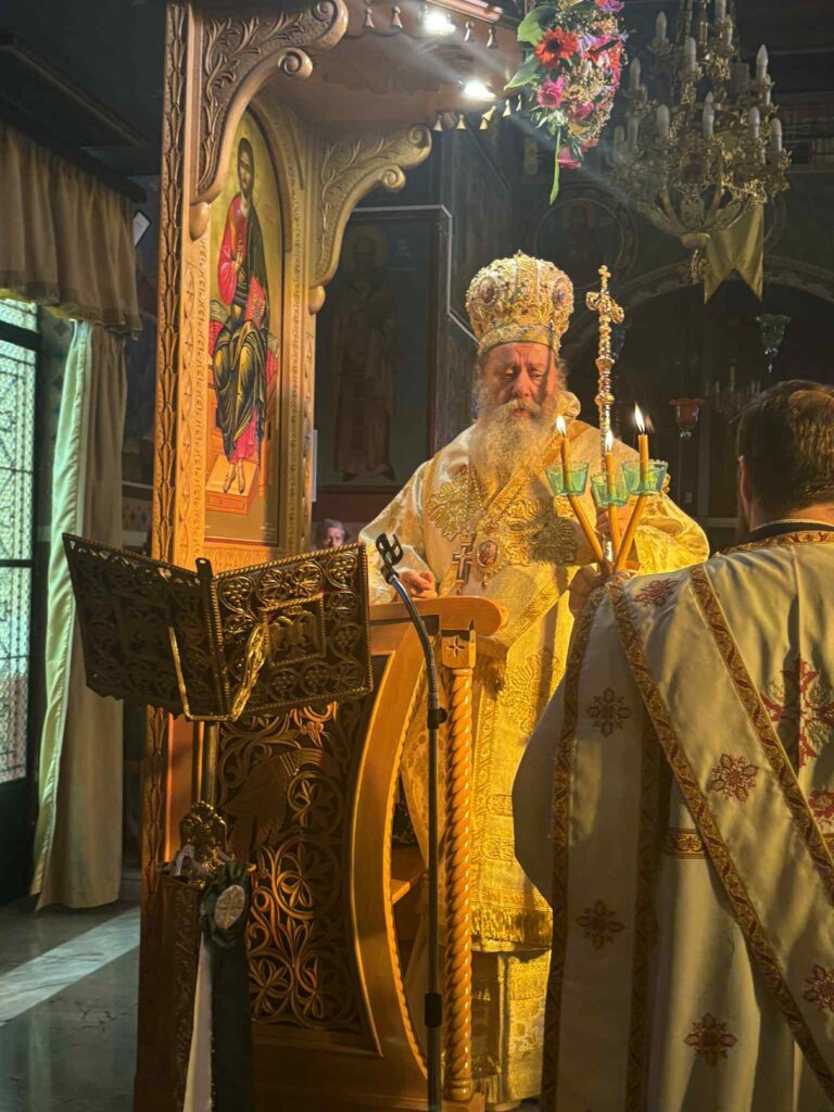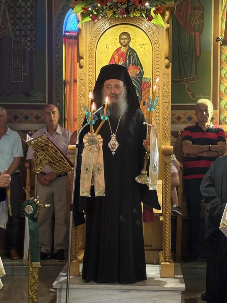Το απόγευμα της ίδιας μέρας τα παιδιά, οι νέοι και οι νέες των Κατηχητικών Σχολείων της ενορίας υποδέχτηκαν τον Σεβασμιώτατο Μητροπολίτη Πατρών κ.κ. Χρυσόστομο. Στον Αρχιερατικό Εσπερινό τελέστηκε αρτοκλασία και ο Σεβασμιώτατος κήρυξε τον θείο λόγο. Ανάμεσα στα άλλα τόνισε ότι η προσευχή των δικαίων εισακούεται από τον Θεό. Έτσι και ο Θεός άκουσε τους ευσεβείς Ζαχαρία και Ελισάβετ που ζητούσαν να αποκτήσουν παιδί αν και ήταν σε προχωρημένη ηλικία. Και το θαύμα έγινε και γεννήθηκε ο Ιωάννης σύμφωνα με όλους τους φυσικούς νόμους, ο οποίος φώναξε το «Μετανοείτε, ήγγικε γαρ η Βασιλεία των Ουρανών», ένα κήρυγμα επίκαιρο και σήμερα. Σήμερα που γίνεται πόλεμος στον Βορρά και στη Μ. Ανατολή, όπου βομβαρδίζεται η ορθόδοξη Εκκλησία του Προφήτη Ηλία εν ώρα της Θείας Λειτουργίας στη Δαμασκό. Γι’ αυτό κάλεσε σε προσευχή προς κατάπαυση όλων των πυρών και ενίσχυση των πιστών. «Ἐκφράζομε τήν ὀδύνη τῆς ψυχῆς μας γιά τό ἀποτρόπαιο αὐτό ἒγκλημα. Καταδικάζομε ἀπερίφραστα ὡς Ὀρθόδοξοι Χριστιανοί καί ὡς ἂνθρωποι τήν φρικτή αὐτή δολοφονική ἐνέργεια καί ἑνώνομε τίς προσευχές μας γιά τήν ἀνάπαυση τῶν ψυχῶν τῶν μαρτύρων ἀδελφῶν μας, πού ἒπεσαν θύματα αὐτῆς τῆς τρομοκρατικῆς ἐνεργείας.
