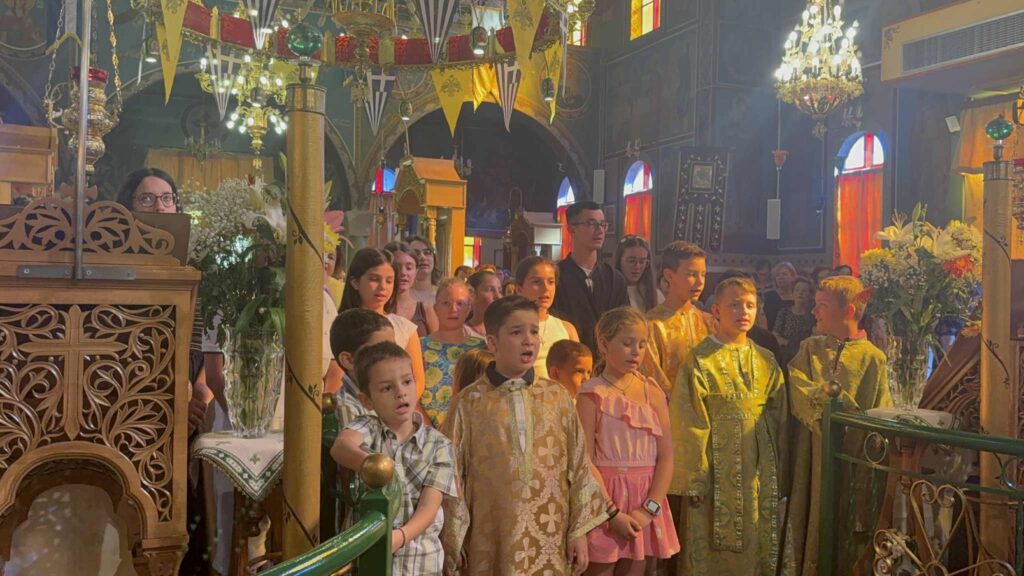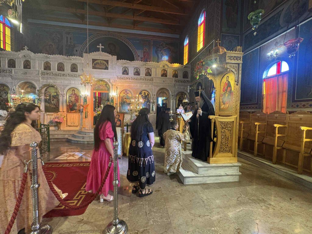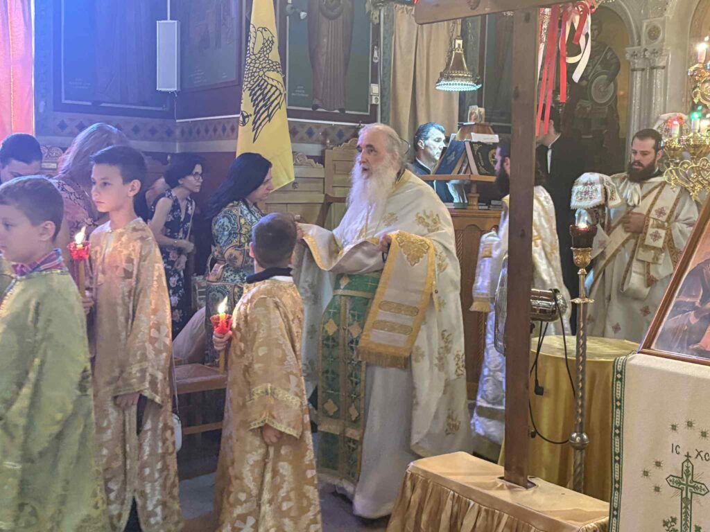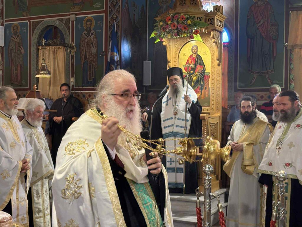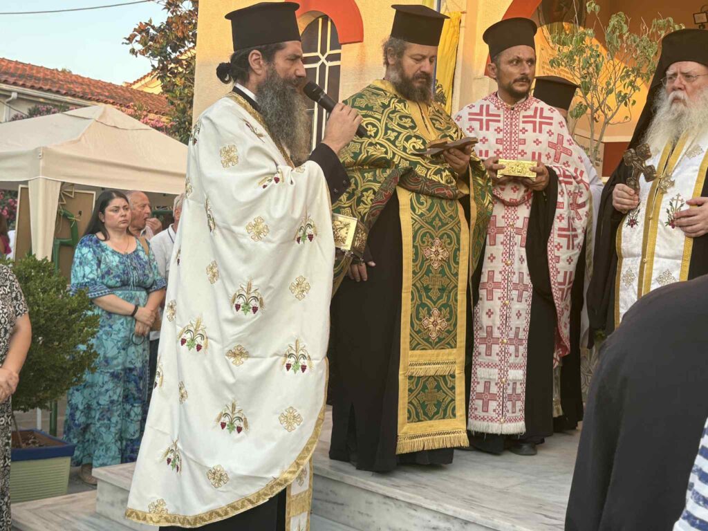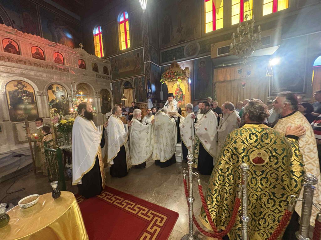 Το απόγευμα της ίδιας μέρας τα παιδιά, οι νέοι και οι νέες των Κατηχητικών Σχολείων της ενορίας υποδέχτηκαν τον Σεβασμιώτατο Μητροπολίτη Πατρών κ.κ. Χρυσόστομο. Στον Αρχιερατικό Εσπερινό τελέστηκε αρτοκλασία και ο Σεβασμιώτατος κήρυξε τον θείο λόγο. Ανάμεσα στα άλλα τόνισε ότι η προσευχή των δικαίων εισακούεται από τον Θεό. Έτσι και ο Θεός άκουσε τους ευσεβείς Ζαχαρία και Ελισάβετ που ζητούσαν να αποκτήσουν παιδί αν και ήταν σε προχωρημένη ηλικία. Και το θαύμα έγινε και γεννήθηκε ο Ιωάννης σύμφωνα με όλους τους φυσικούς νόμους, ο οποίος φώναξε το «Μετανοείτε, ήγγικε γαρ η Βασιλεία των Ουρανών», ένα κήρυγμα επίκαιρο και σήμερα. Σήμερα που γίνεται πόλεμος στον Βορρά και στη Μ. Ανατολή, όπου βομβαρδίζεται η ορθόδοξη Εκκλησία του Προφήτη Ηλία εν ώρα της Θείας Λειτουργίας στη Δαμασκό. Γι’ αυτό κάλεσε σε προσευχή προς κατάπαυση όλων των πυρών και ενίσχυση των πιστών. «Ἐκφράζομε τήν ὀδύνη τῆς ψυχῆς μας γιά τό ἀποτρόπαιο αὐτό ἒγκλημα. Καταδικάζομε ἀπερίφραστα ὡς Ὀρθόδοξοι Χριστιανοί καί ὡς ἂνθρωποι τήν φρικτή αὐτή δολοφονική ἐνέργεια καί ἑνώνομε τίς προσευχές μας γιά τήν ἀνάπαυση τῶν ψυχῶν τῶν μαρτύρων ἀδελφῶν μας, πού ἒπεσαν θύματα αὐτῆς τῆς τρομοκρατικῆς ἐνεργείας.