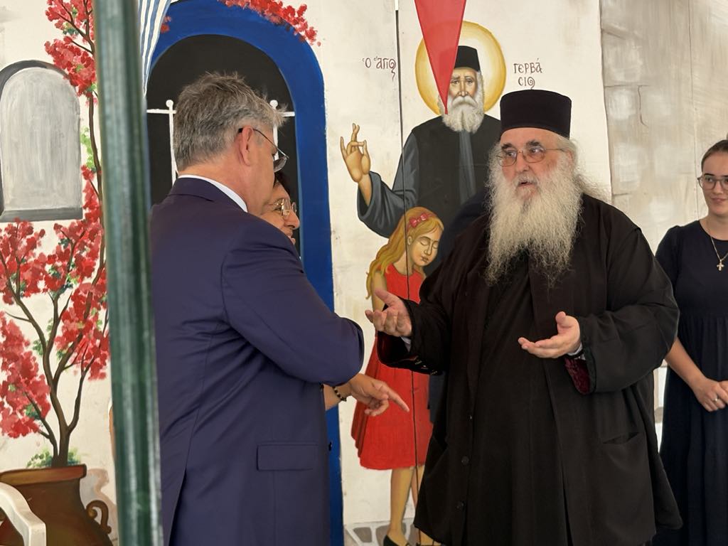 Ιδιαίτερη ευλογία υπήρξε και η παρουσία του Αγιορείτου Μοναχού π. Νεκταρίου Παντοκρατορινού, που μετά το πέρας του εκκλησιαστικού κεράσματος παρέμεινε με τους πιστούς και αρκετούς νέους και νέες και συνομίλησε μαζί τους απαντώντας σε ερωτήματα πίστεως και θείας αναζητήσεως μεταφέροντας με τον τρόπο του το αγιορείτικο θυμίαμα από το Περιβόλι της Παναγίας μας στον περίβολο του ναού του Αγίου Ιωάννη Προδρόμου Παραλίας στην Πάτρα.