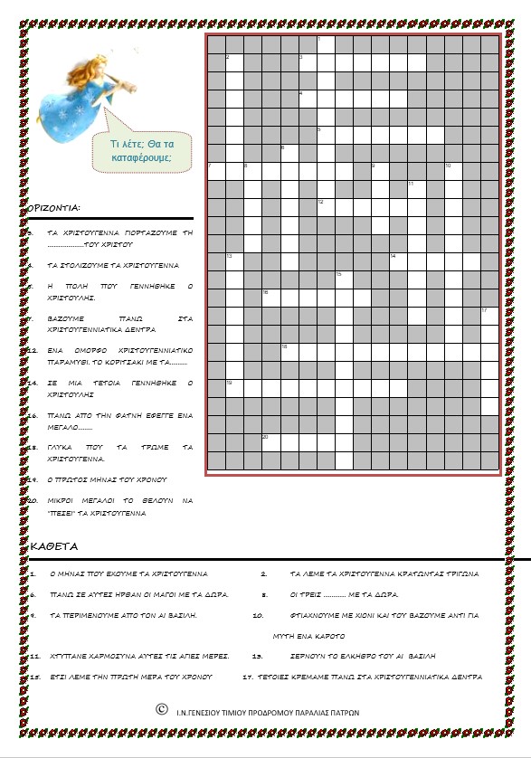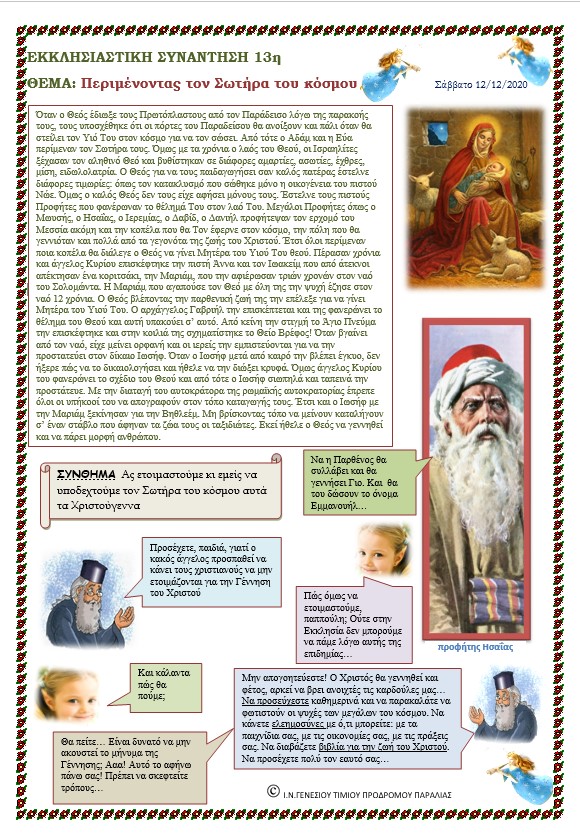 ΦΥΛΛΟ ΕΡΓΑΣΙΑΣ “ΠΕΡΙΜΕΝΟΝΤΑΣ ΤΟΝ ΜΕΣΣΙΑ” 13Δ Πλοήγηση άρθρων Προηγούμενη Προηγούμενο άρθρο: Η Παρθένος Μαριάμ ταξιδεύει με τον Ιωσήφ προς την Βηθλεέμ (Κατηχητικό προσχολικής & Α΄Δημοτικού)Επόμενη Επόμενο άρθρο: Περιμένοντας τον Μεσσία (Κατηχητικό Δ΄- ΣΤ΄Δημοτικού) Αφήστε μια απάντηση Ακύρωση απάντησηςΗ ηλ. διεύθυνση σας δεν δημοσιεύεται. Τα υποχρεωτικά πεδία σημειώνονται με *Σχόλιο * Όνομα * Email * Ιστότοπος Αποθήκευσε το όνομά μου, email, και τον ιστότοπο μου σε αυτόν τον πλοηγό για την επόμενη φορά που θα σχολιάσω.